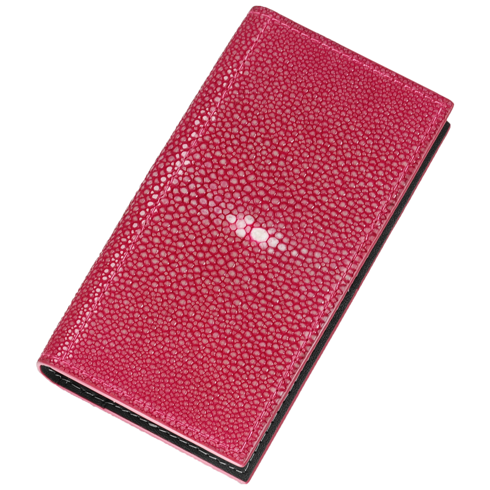 「スパークラー2」の革の表面は研磨を抑えめにしてガルーシャ本来の粒々感を生かした「セミマット仕上げ」。ビーズひとつずつの先端が少し丸みを帯びて、自然で優しい印象です。「フーシャ」はスパークラー2の人気の定番色。鮮やかで濃厚な大人っぽい青味ピンクは、目にするたびに、はつらつとした気持ちになります。