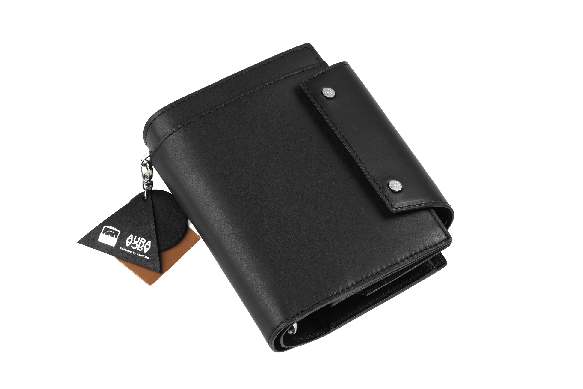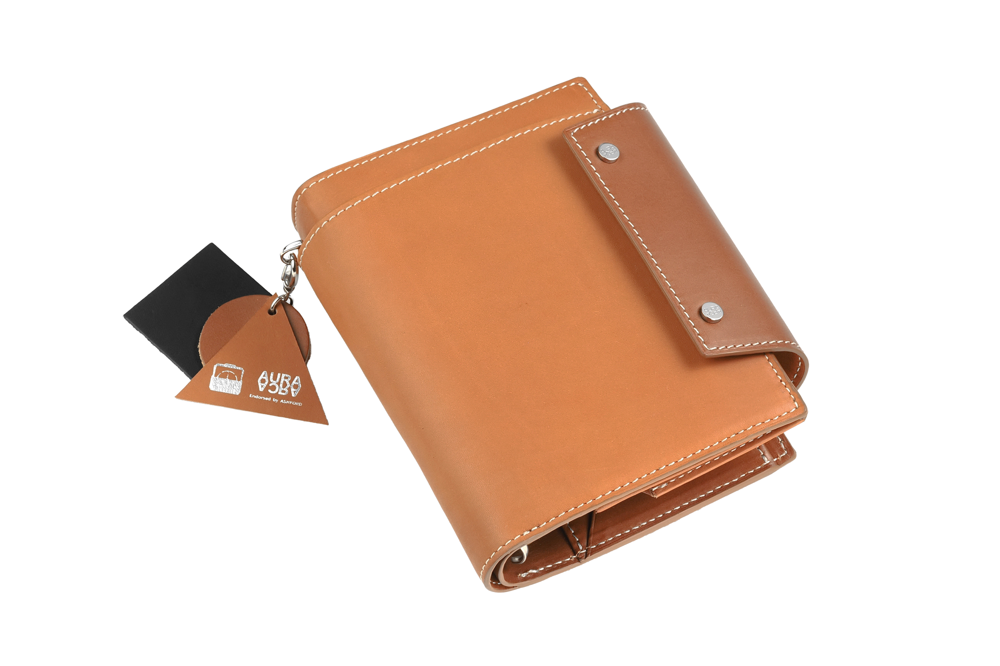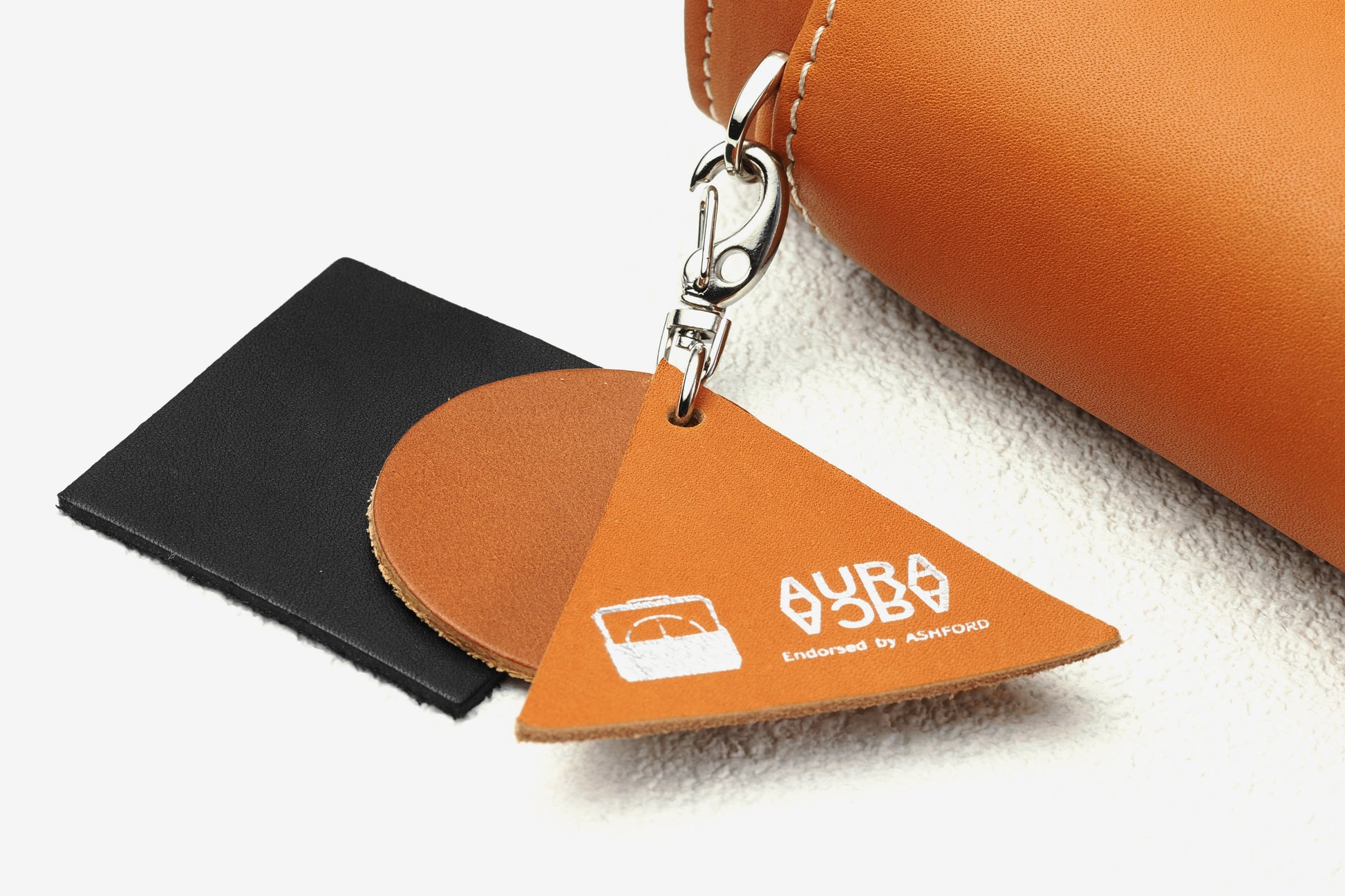 背のDリングには着脱できる「エイジングチャーム」を装備。エテルナム本体の表と裏に使っていると同じ上質なカーフを採用しています。手で積極的に触れることで革の経年変化を先取りできる遊び心ある仕様です。お手入れをする時のクリームの試し塗りにも使え、安心して本体ケアに臨めます。
