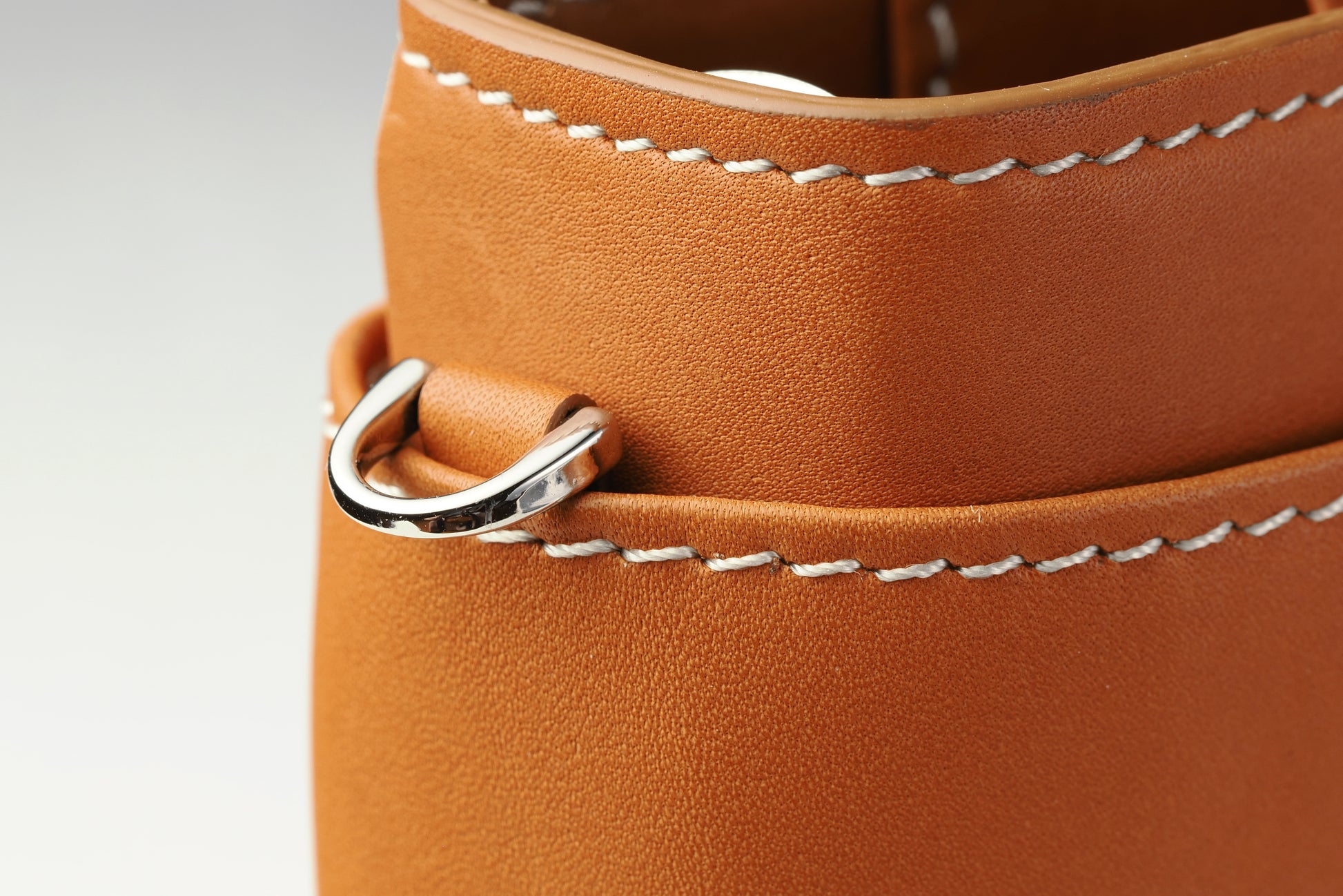 背の上部には美しいDリングを装備。付属する「エイジングチャーム」をはじめ、工夫次第で多彩に活用できます。