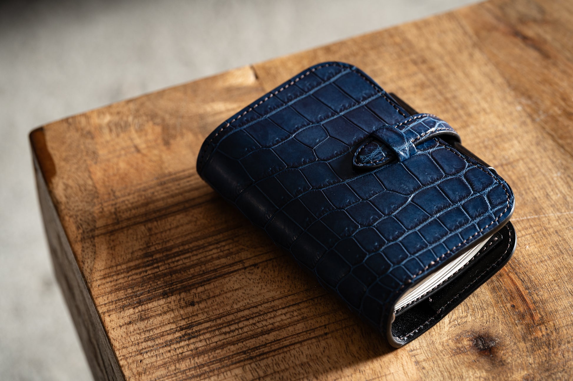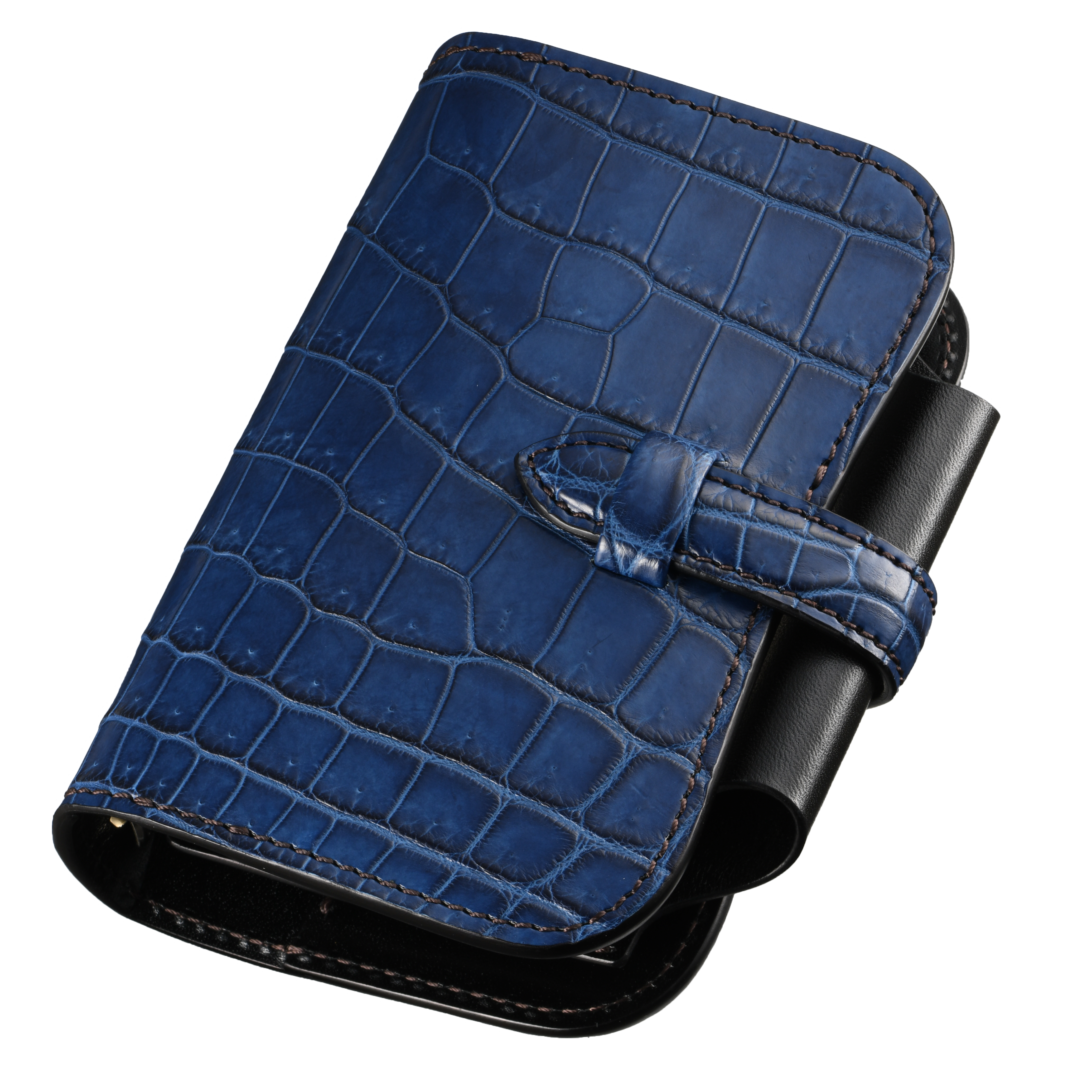 日本の美意識を映す藍染めと、クロコダイルという素材が重なり合う時の流れは、もはや単なる手帳を超えた存在へ。時を経てエイジングを重ねるごとに、持ち主の人生を映し出す“一生ものの相棒”へと育っていくことでしょう。