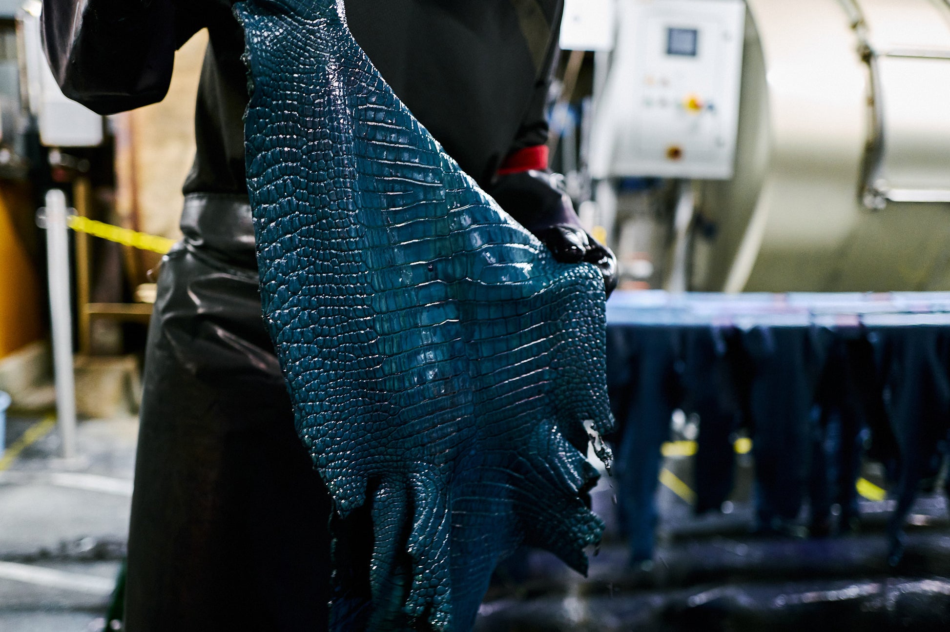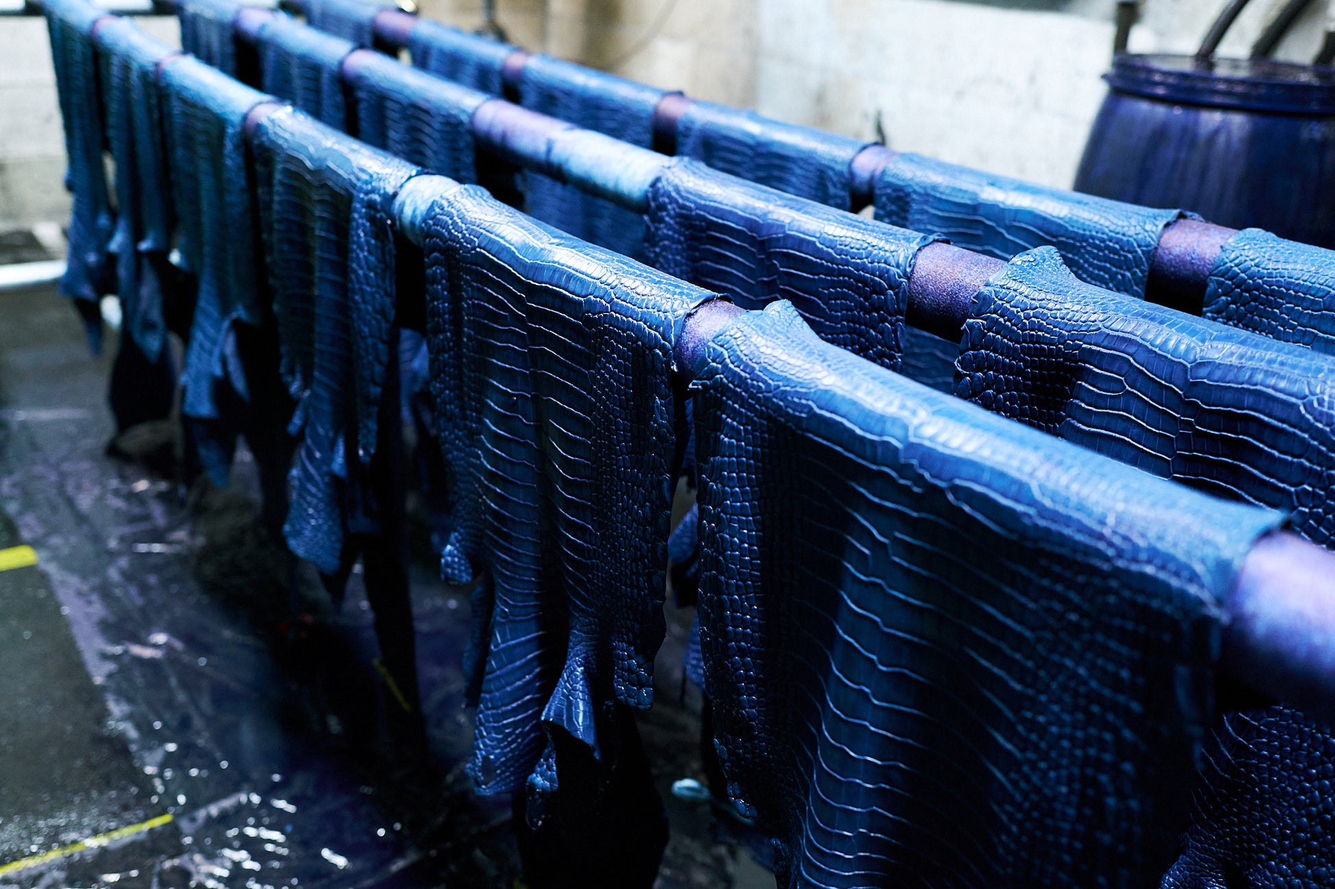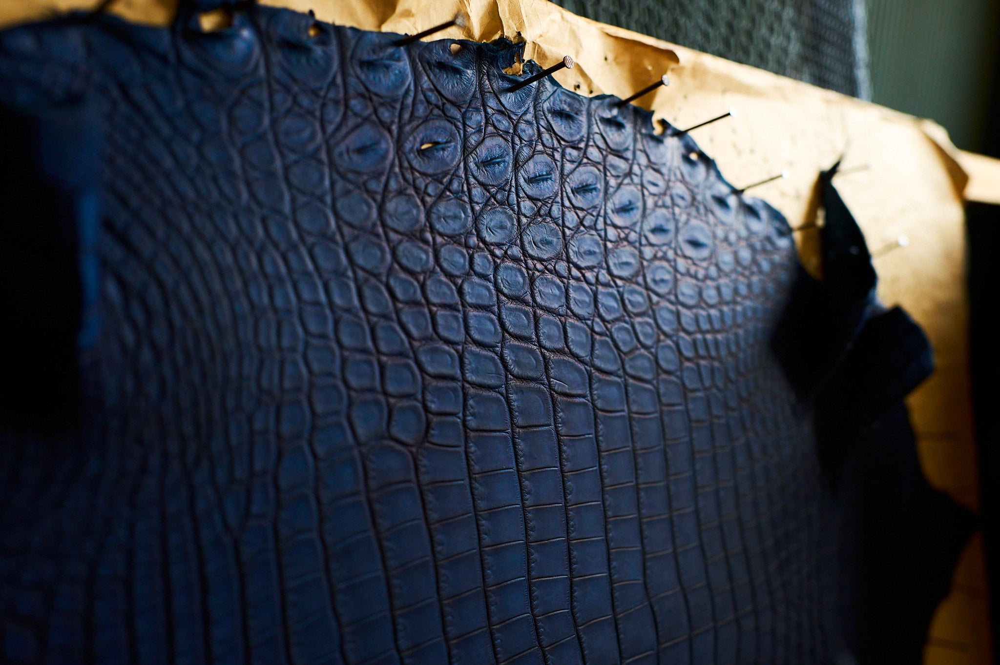 今回の取材で、クロコダイルを藍染する瞬間を目の当たりにし、一枚一枚に職人たちの確かな技と膨大な時間が注がれていることを痛感しました。