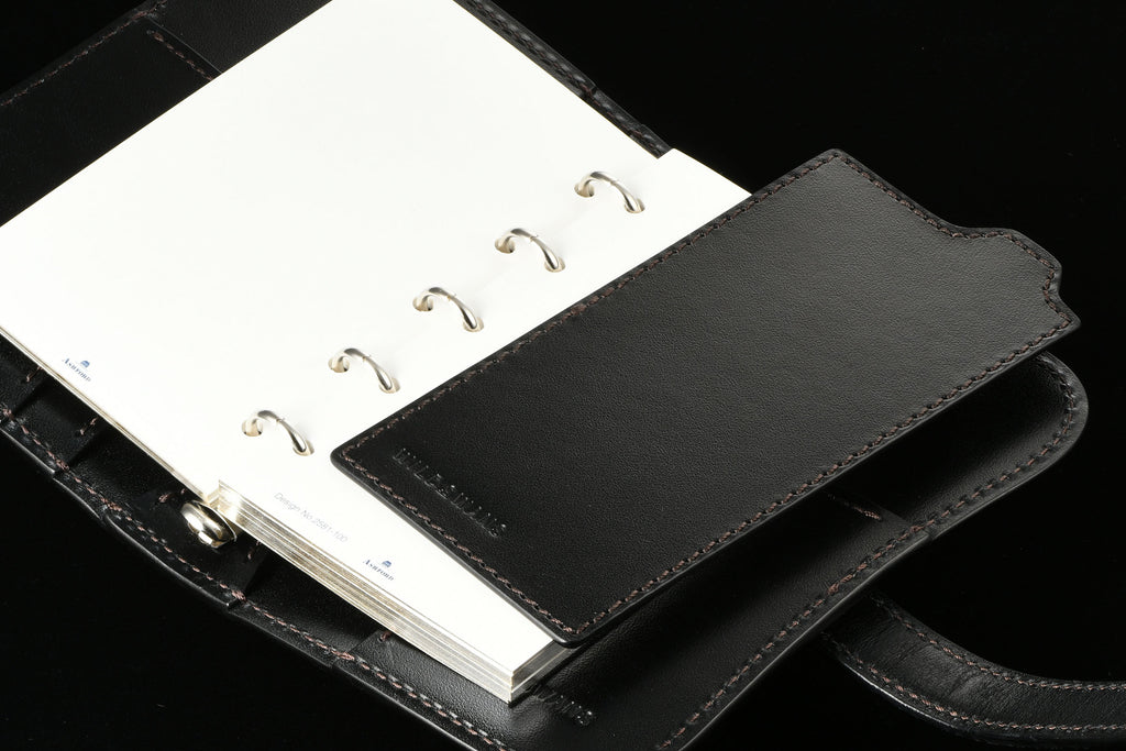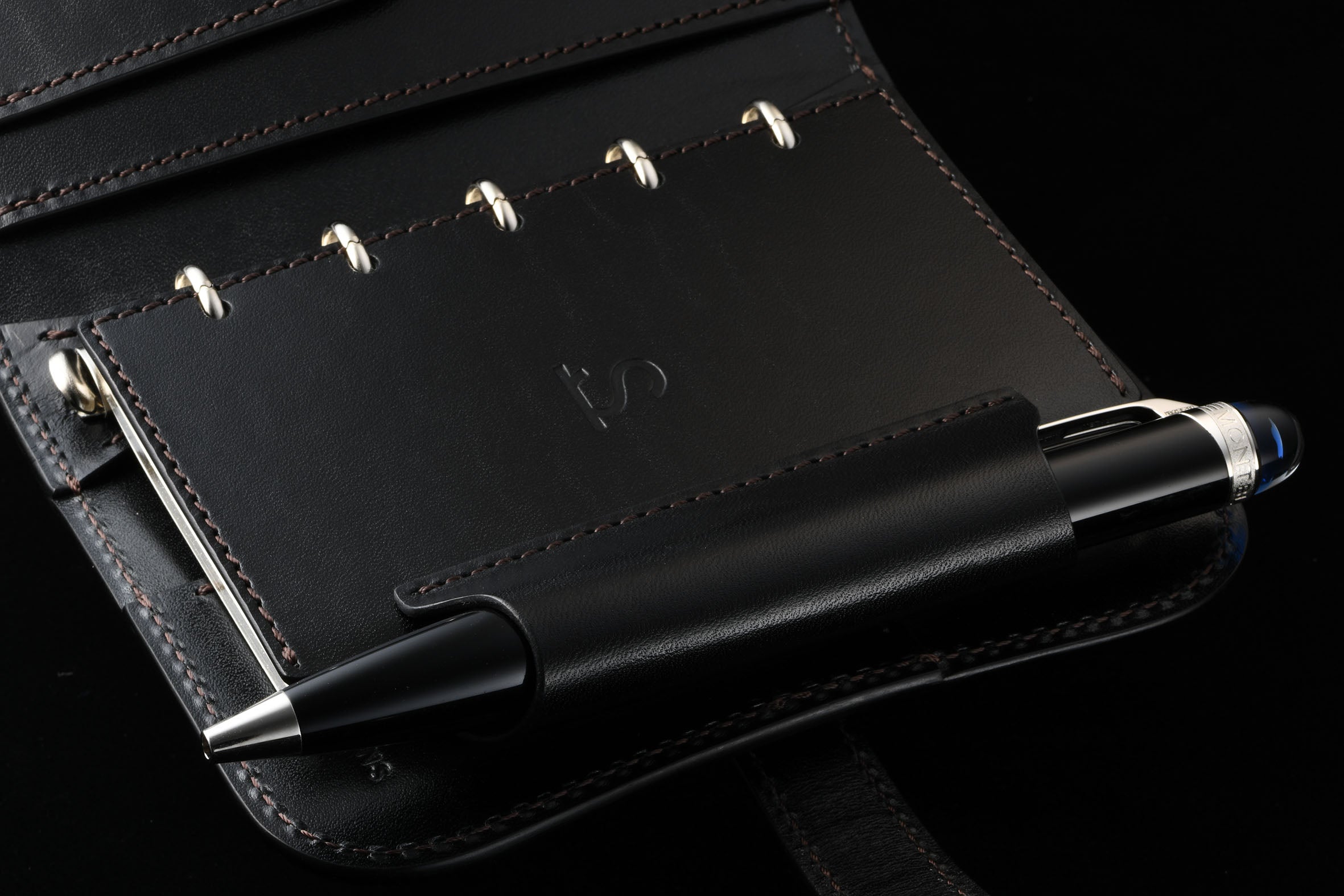 同じ素材の「サドルプルアップ」で仕立てたペンホルダー付きリフィルも付属した贅沢な仕様です。