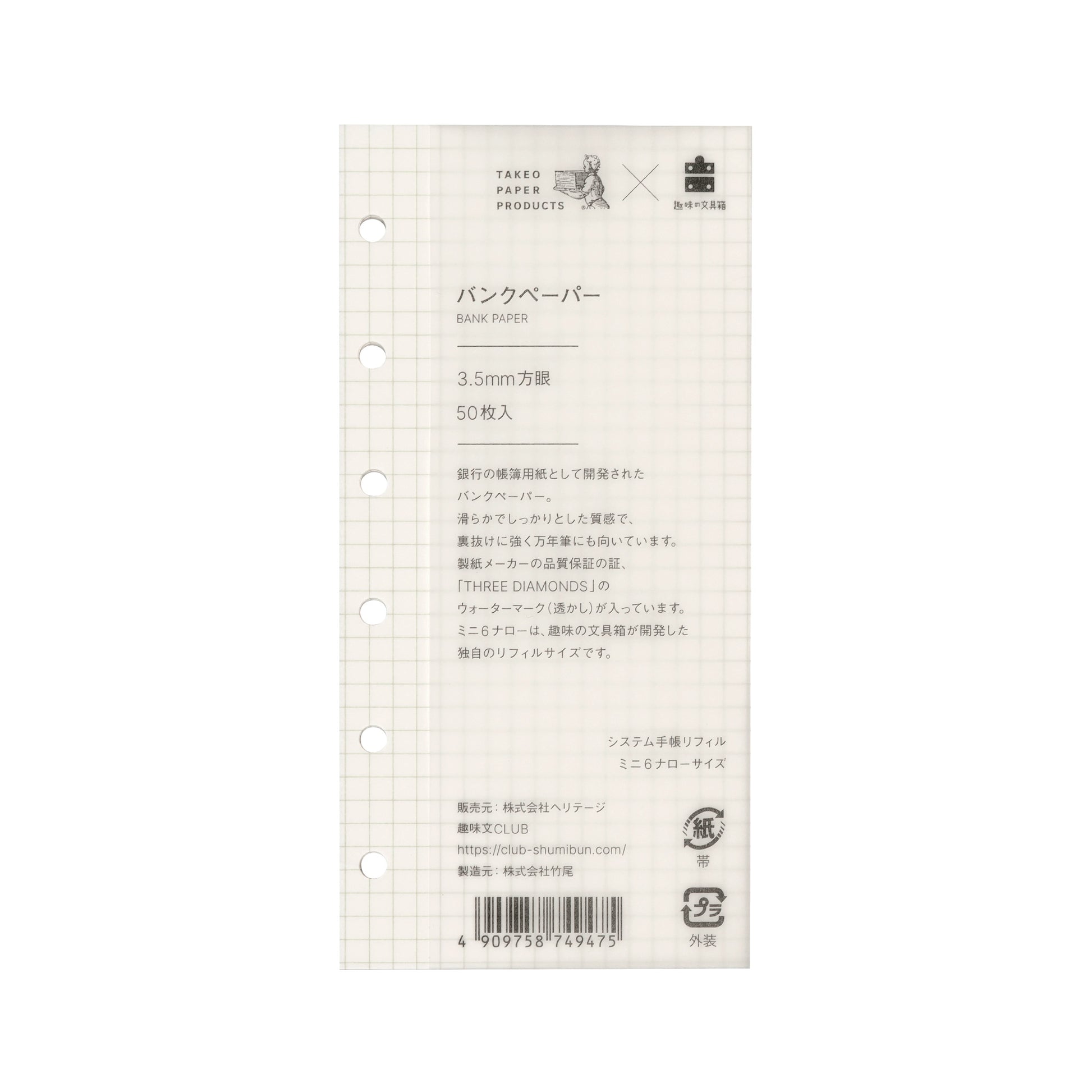 バンクペーパー ミニ6ナロー 3.5mm方眼 50枚(趣味文オリジナル)【5営業日以内出荷】