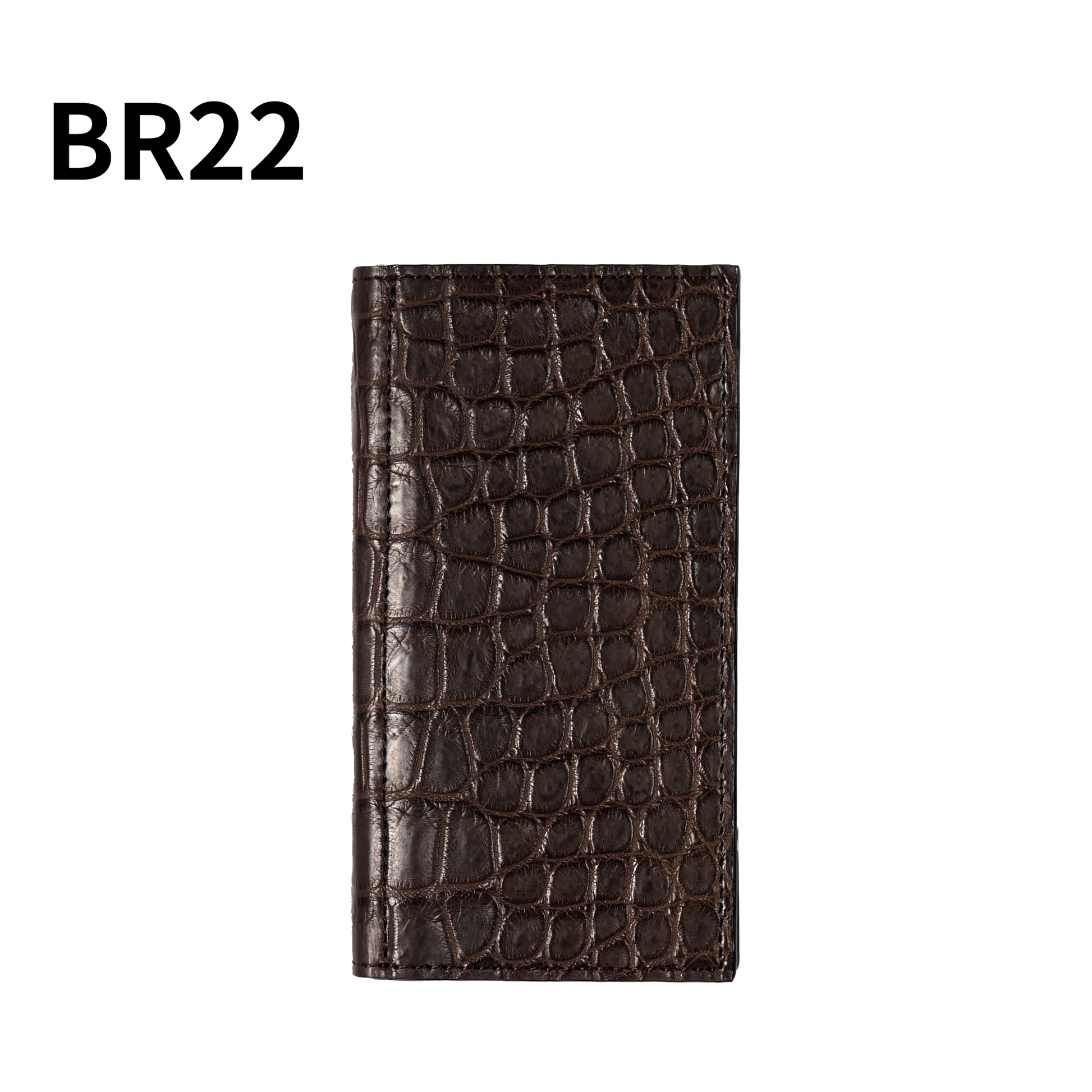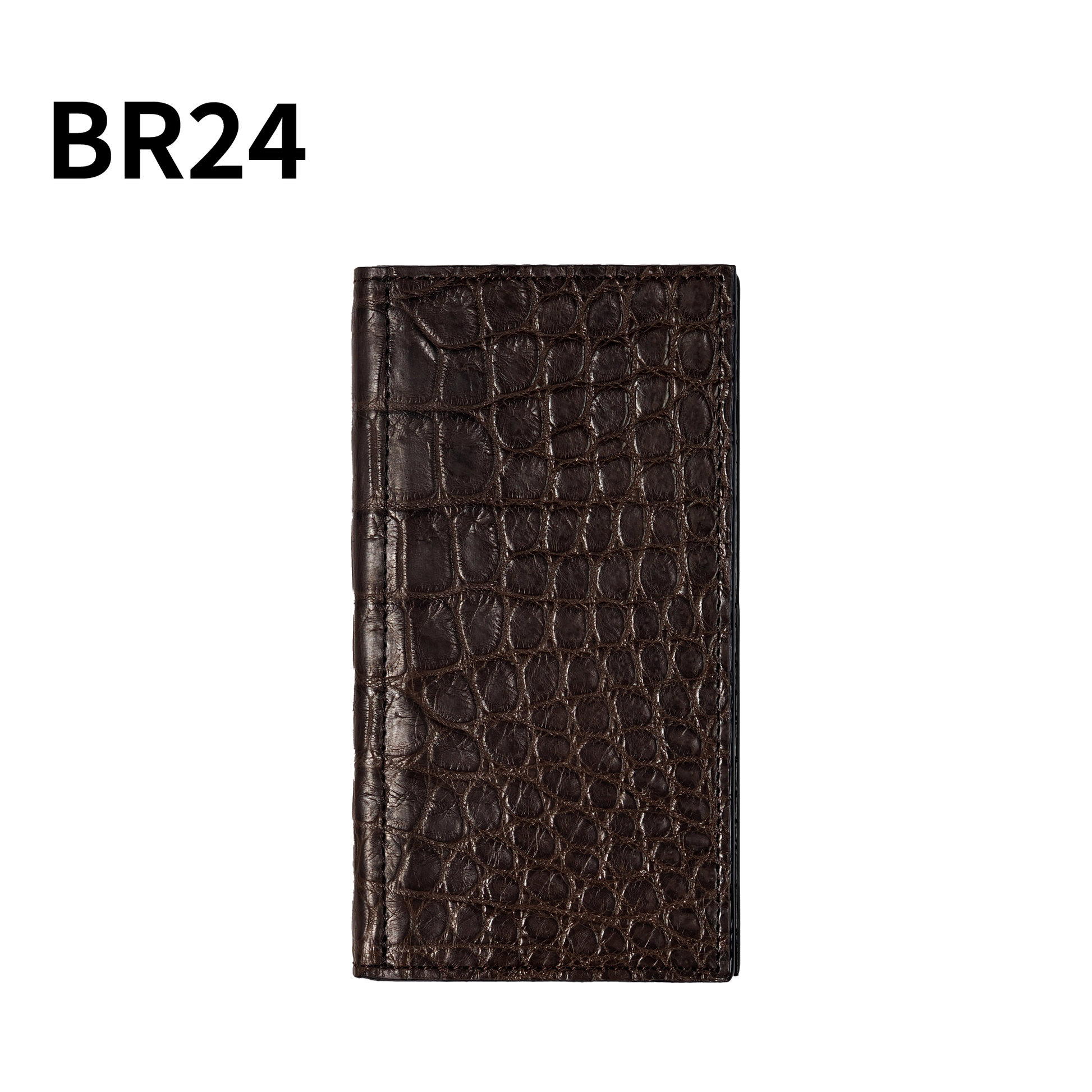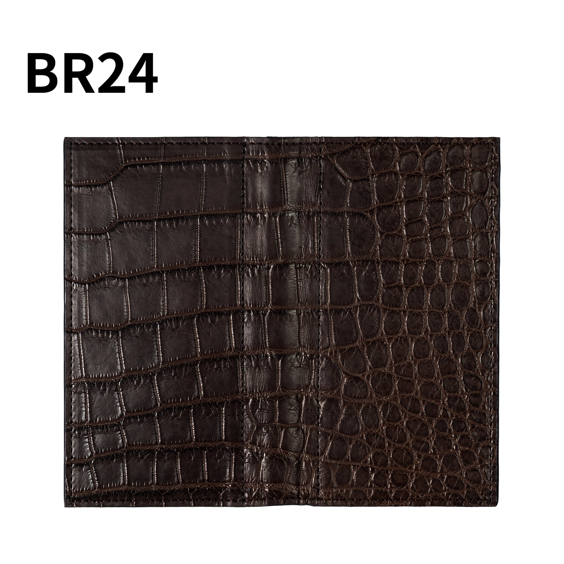 ミニ6ナローは、趣味の文具箱が開発した独自のサイズです。このシリーズの最高峰となるモデル「クロコダイル」です。表側は、ワニ革の中でも希少かつ最高級のスモールクロコダイル「ポロサス」の1枚革を採用。天然のクロコダイルの絶妙な形の鱗(竹腑)の配置が美しい。