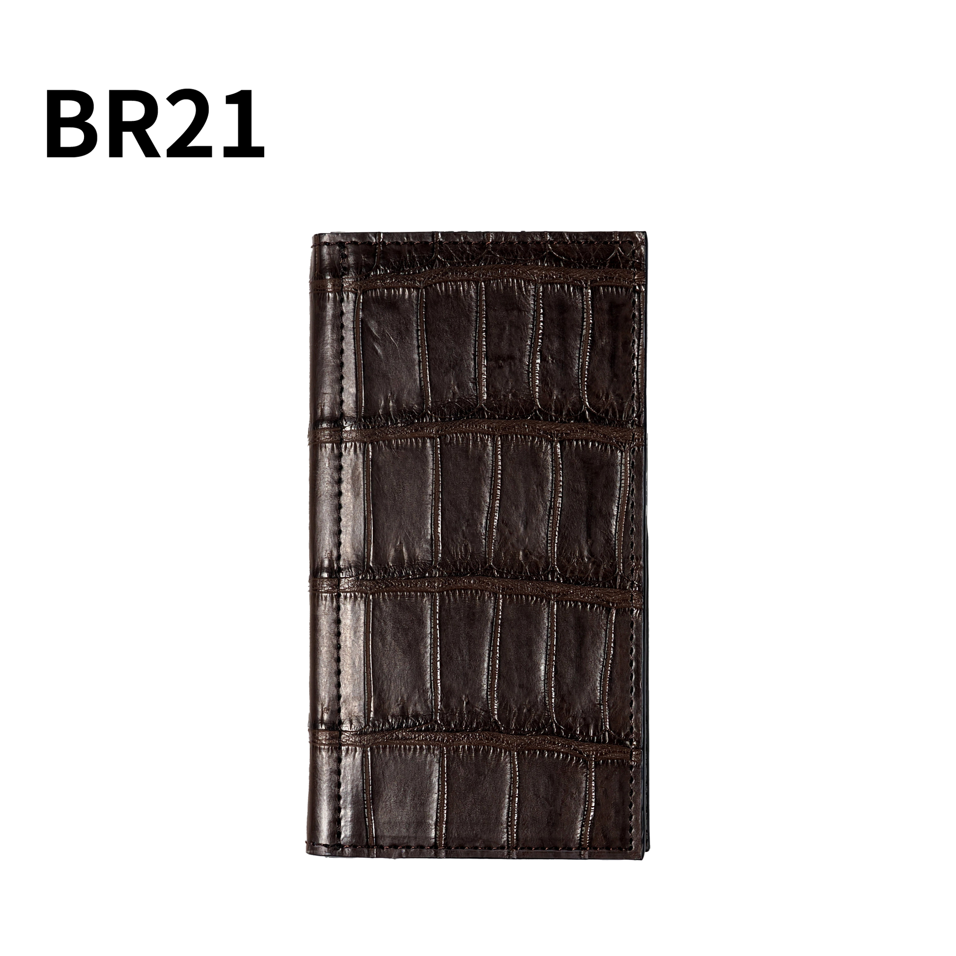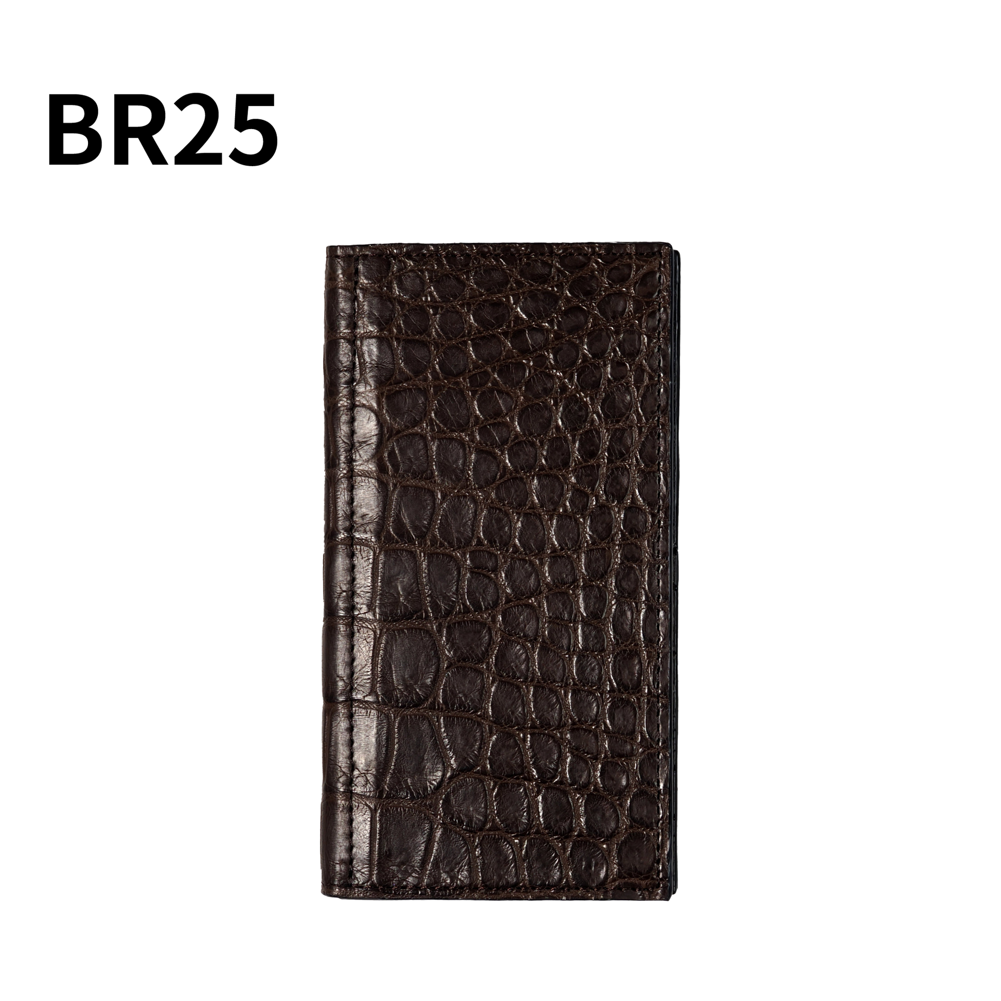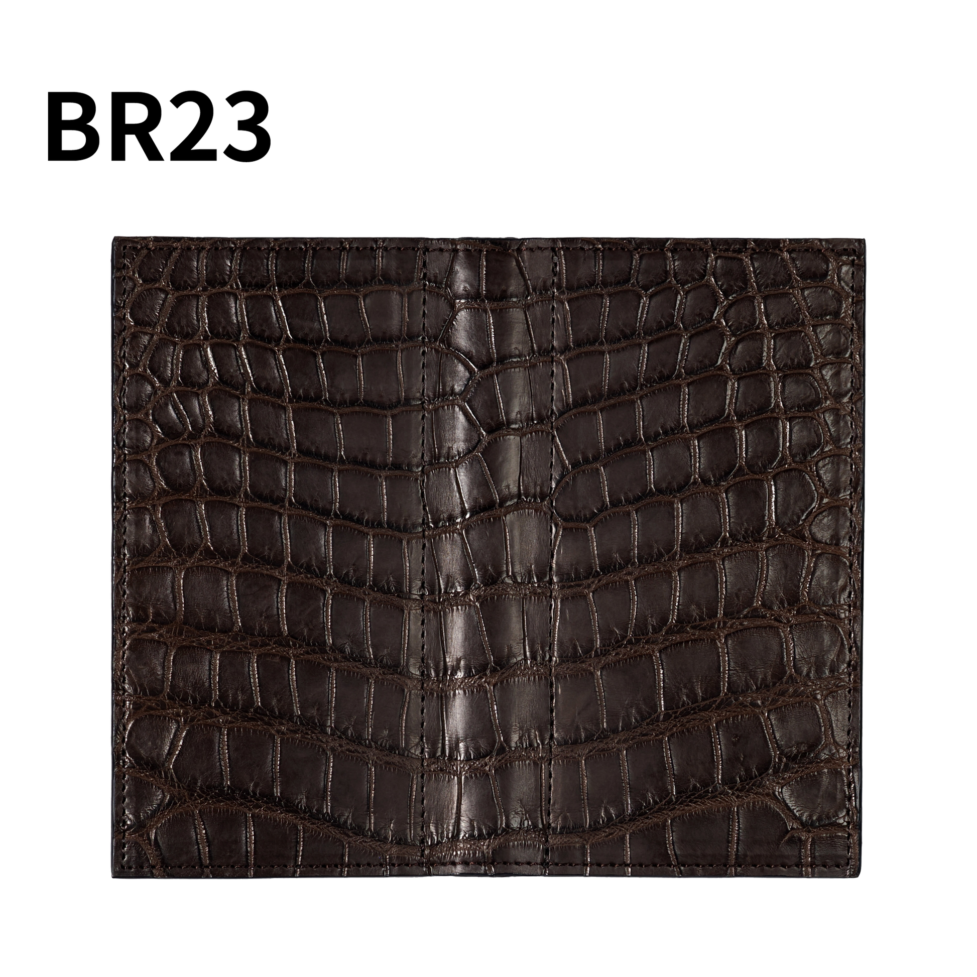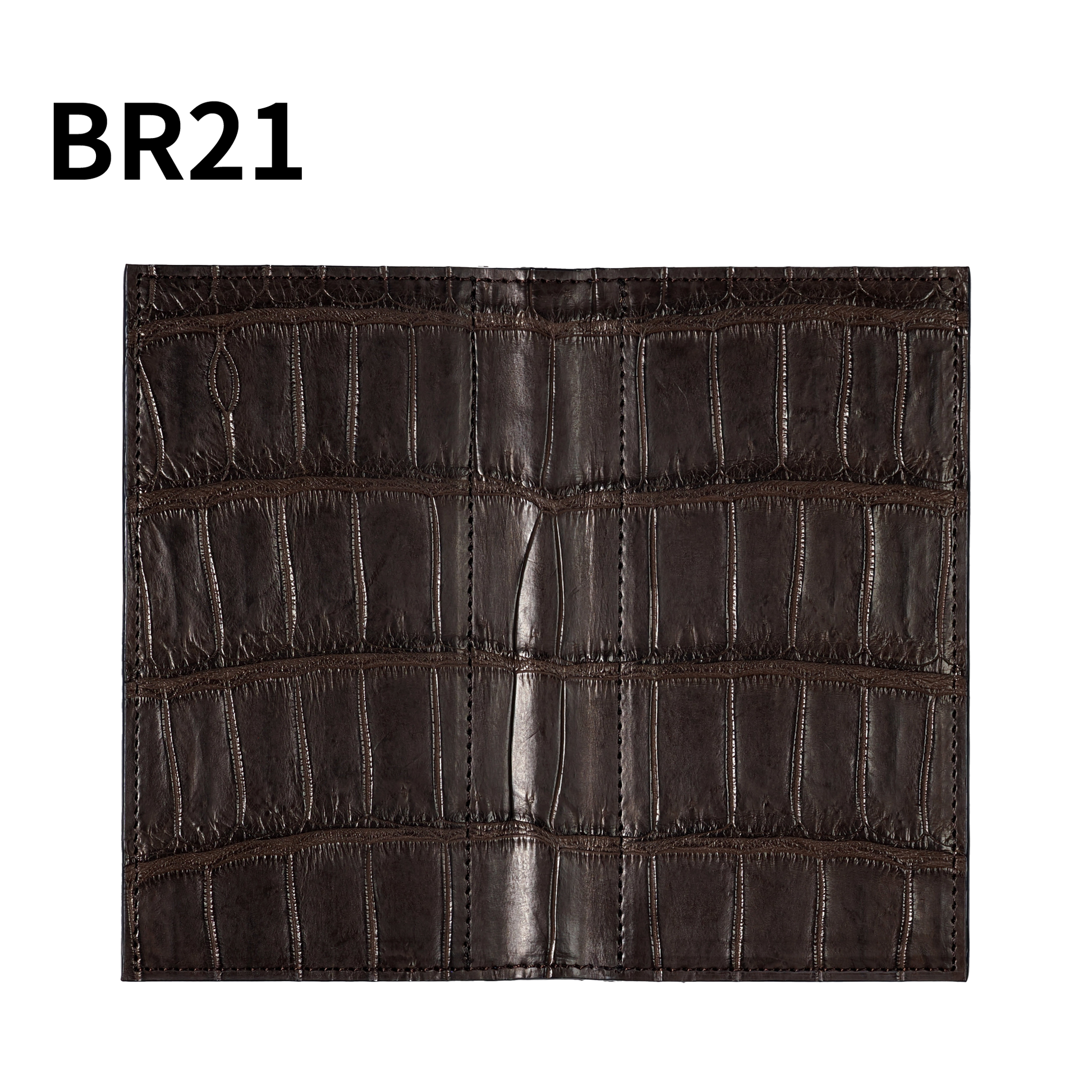 ミニ6ナローは、趣味の文具箱が開発した独自のサイズです。このシリーズの最高峰となるモデル「クロコダイル」です。表側は、ワニ革の中でも希少かつ最高級のスモールクロコダイル「ポロサス」の1枚革を採用。天然のクロコダイルの絶妙な形の鱗(竹腑)の配置が美しい。
