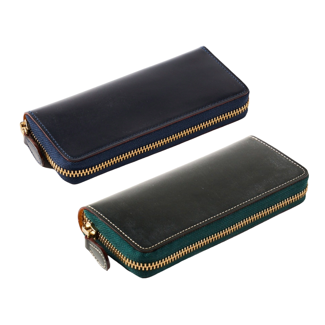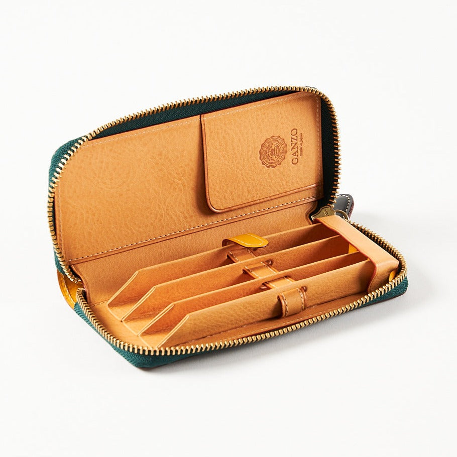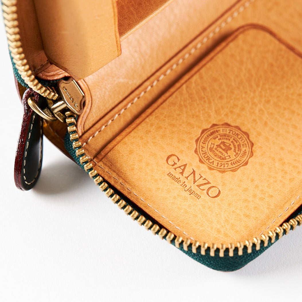高級レザーブランド「GANZO」と雑誌「趣味の文具箱」がコラボしたジッパー式の美しいペンケースです。GANZO製品を象徴するJ&Eセジュイック社の高級ブライドルレザーを表に使っています。ブライドルレザーは使い込むほどに発色と独特の艶が増していきます。内側のミネルバボックスとのコントラストも美しい。ペンは可動式のレザー製のベルトで固定します。ペンのフォルムが美しく見わたせるようにベルトの配置も工夫しました。収納は、長さ約150mm、太さ約15mmくらいの比較的大型のペン(モンブラン149、ペリカンM1000など)にも対応しています(太いペンを収納するときは、細身のペンなどと組み合わせて収納してください)。ジッパーを開けるたびに、愛用のペンが美しく勢揃いしている姿を眺められる魅惑のペンケースです。