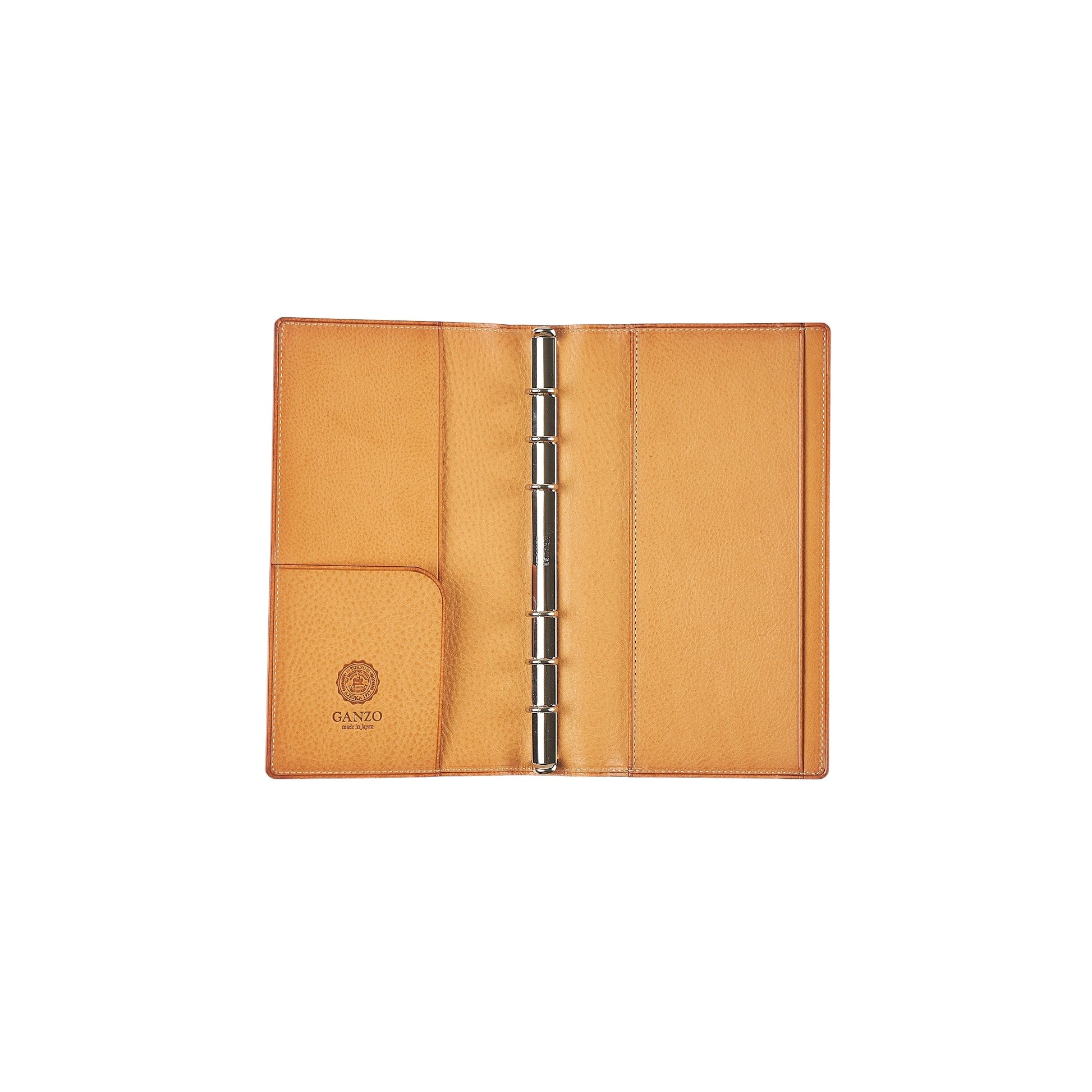 高級レザーブランド「GANZO」と雑誌「趣味の文具箱」がコラボしたバイブルサイズのシステム手帳。GANZO製品を象徴するJ&Eセジュイック社のブライドルレザーをカバー表に使っています。内側のミネルバボックスとのコントラストが美しい。リング径は11mmで、薄くてコンパクトなので軽快な使いこなしができます。日々活用して、ブライドルレザー独特の艶と手触りを楽しんでください。