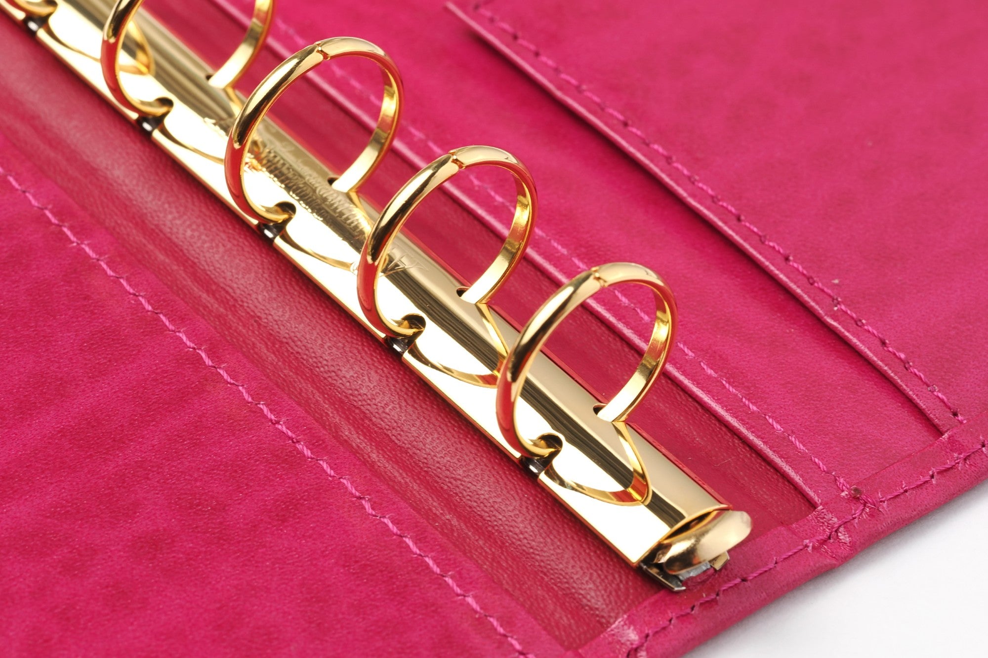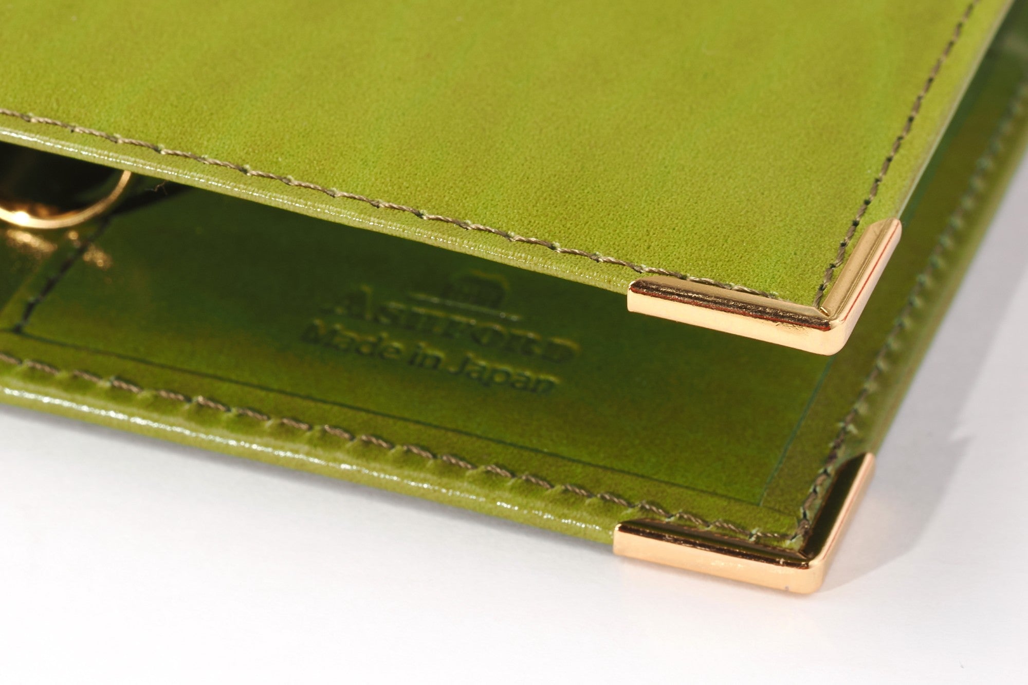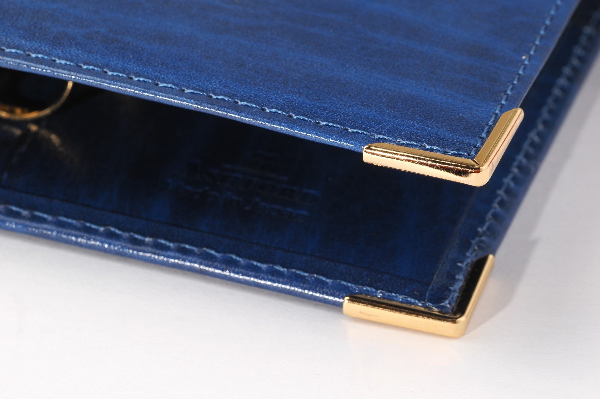 クラシカルな印象を際立たせているのが、カバー隅の金色のコーナー金具。大きなリングも同系の金色です。