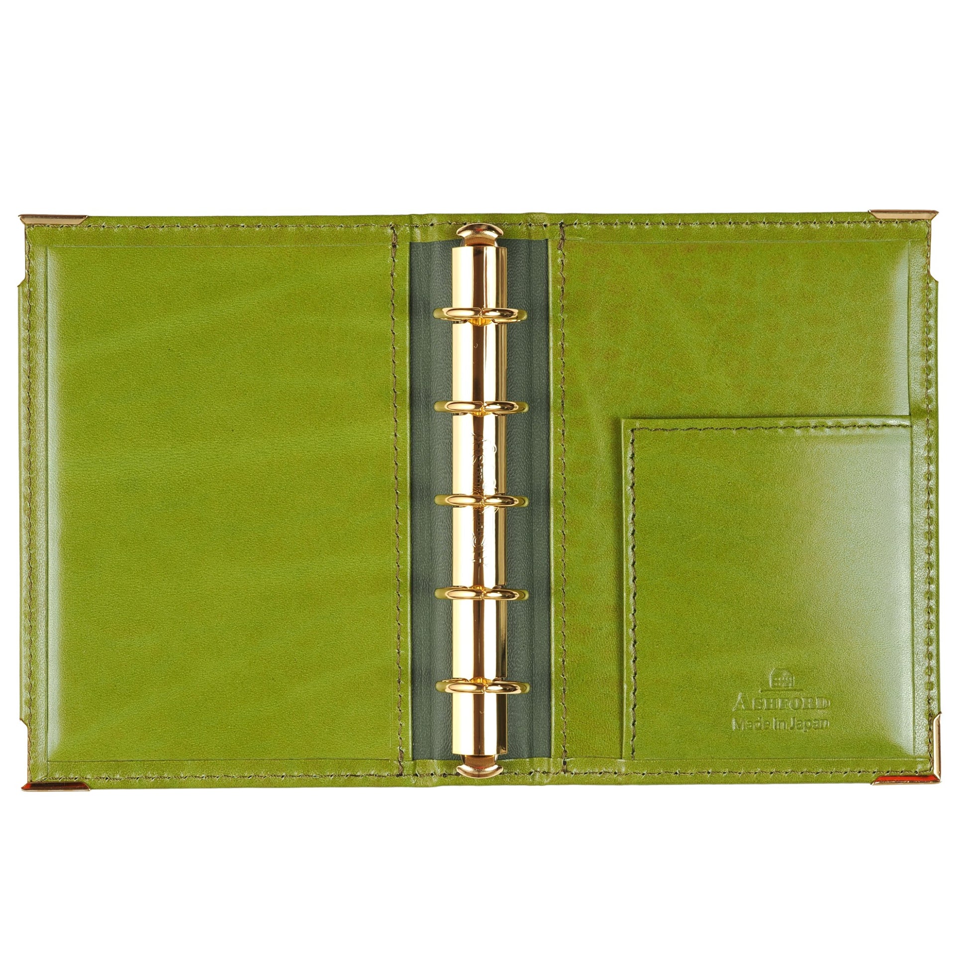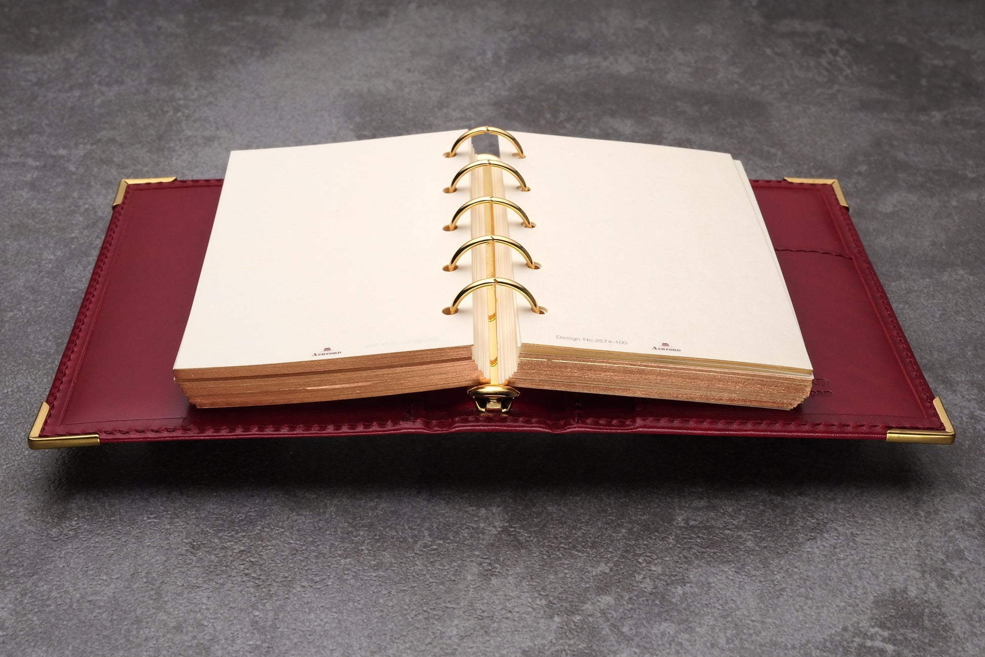 このモデルはアシュフォードが開発した最新の17mm大口径リングを搭載。M5としては最大級で、多くのリフィルを綴じることができます。リフィル満載の姿はまるで本革を纏った小型の辞書や聖書のよう。