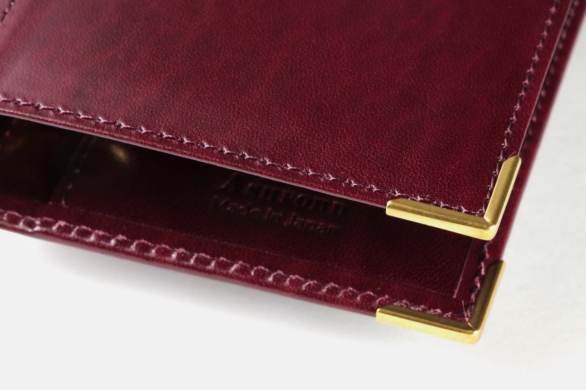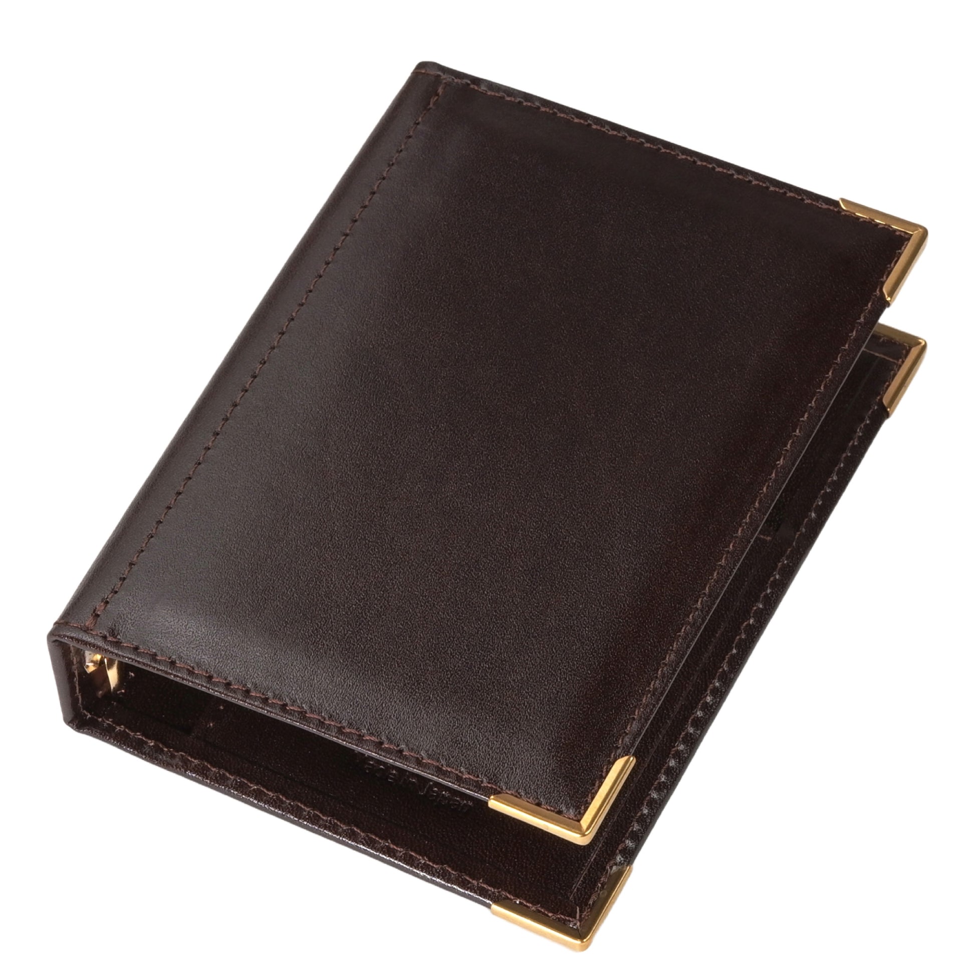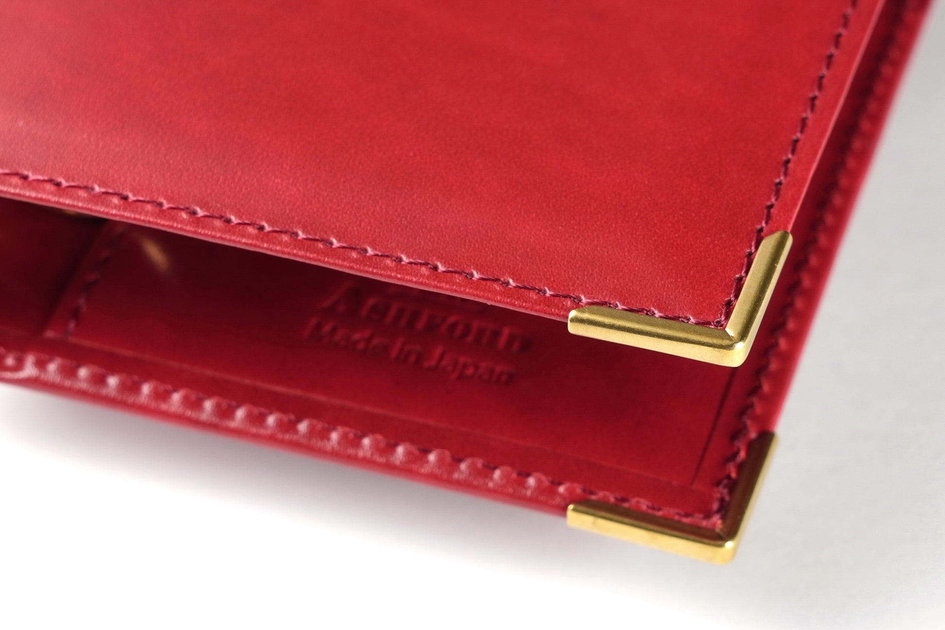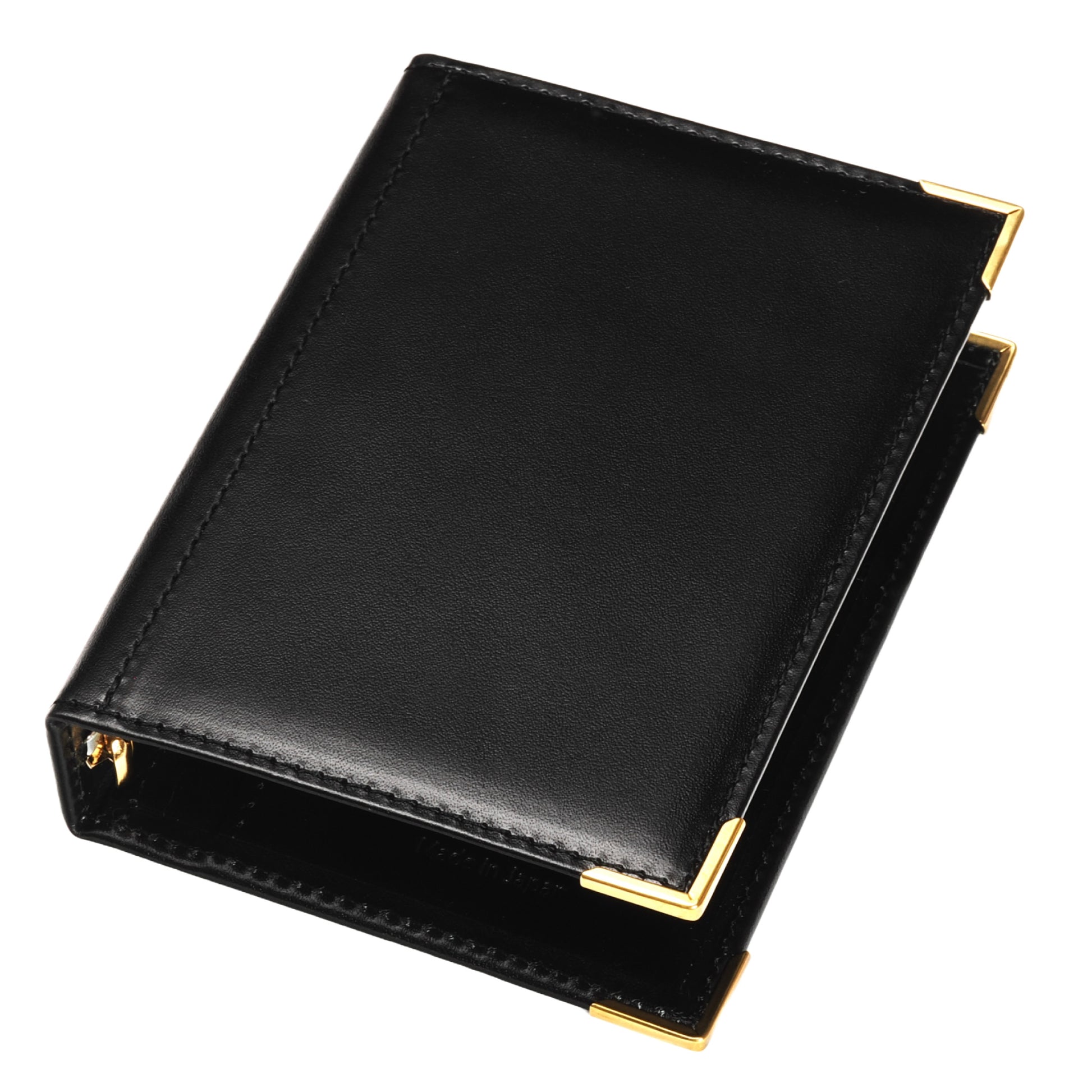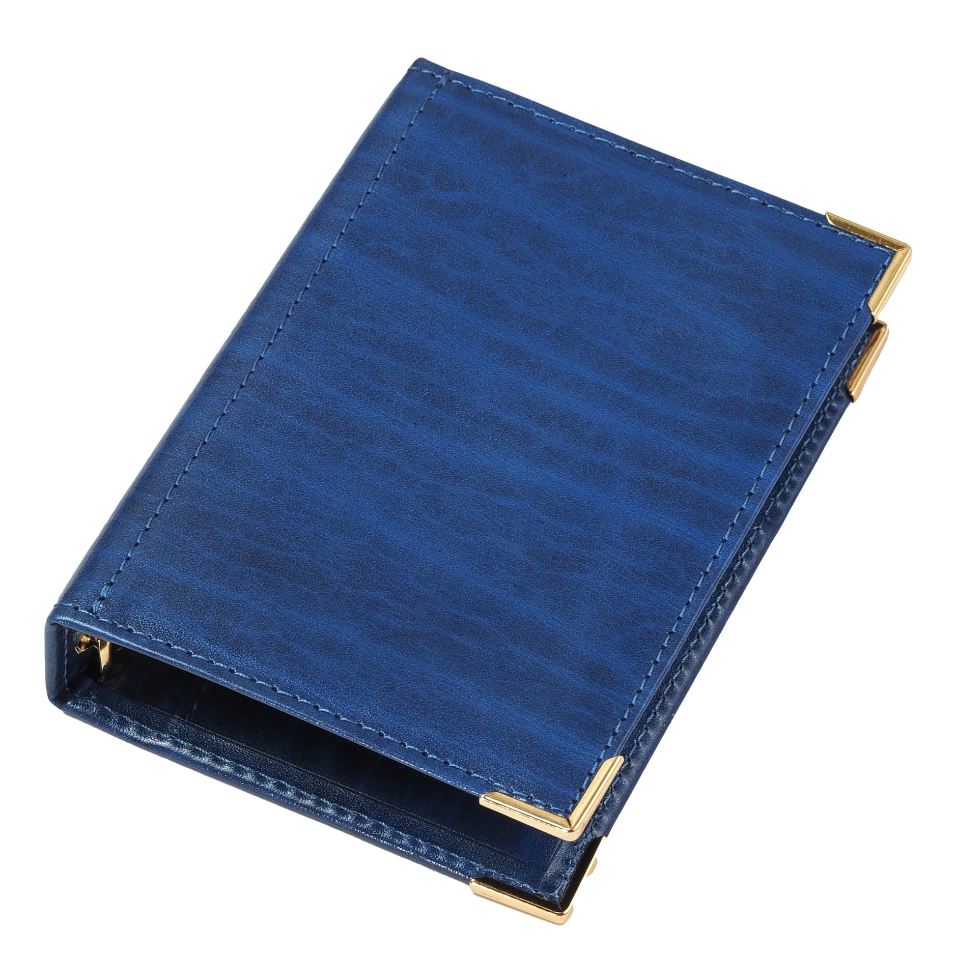 クラシカルな印象を際立たせているのが、カバー隅の金色のコーナー金具。大きなリングも同系の金色です。