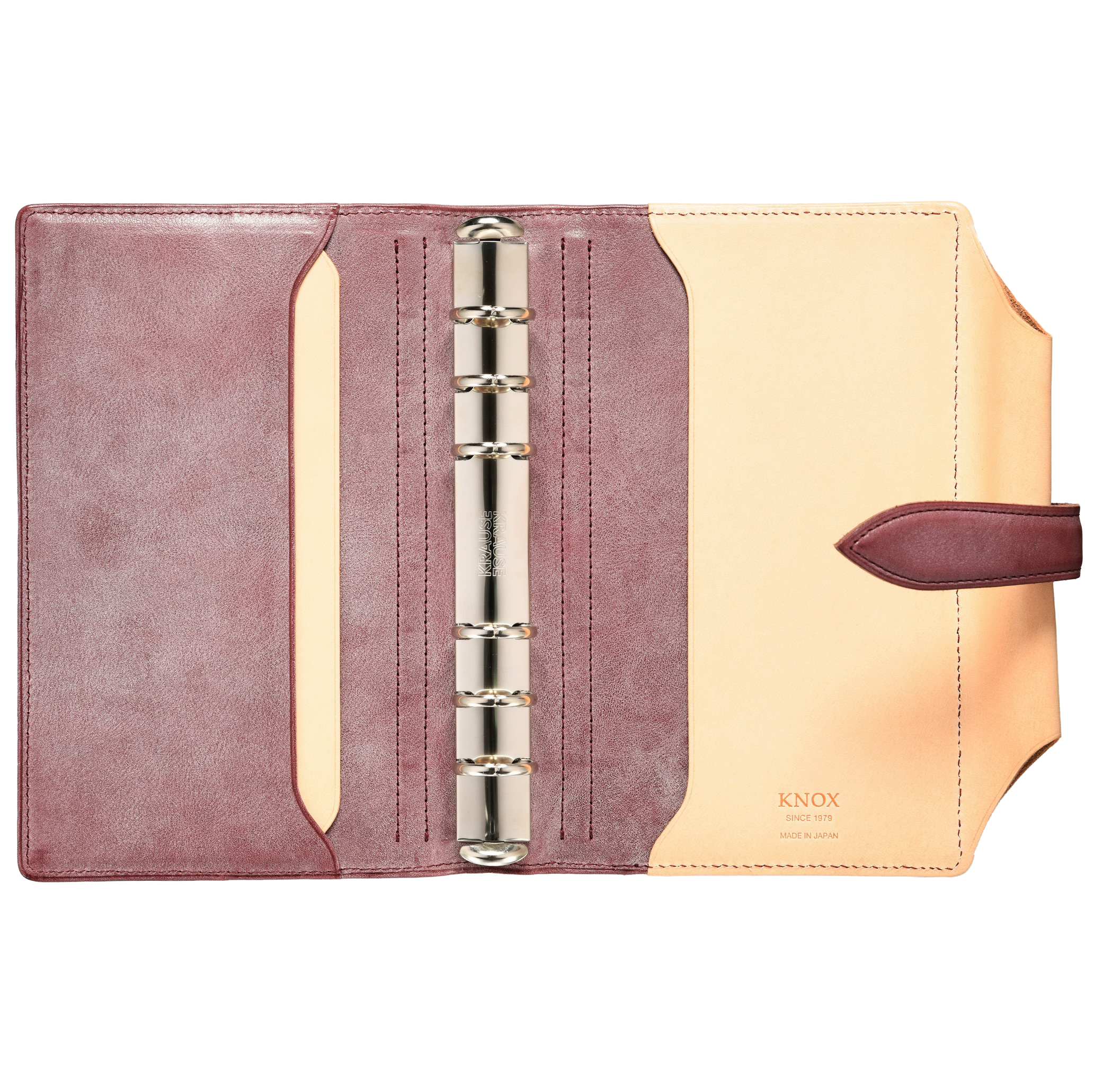 中面のポケットは、シンプルな構成に2種類の革を融合させ、使いやすさと美しさを兼備。厳選素材を機能へと昇華させるノックスの哲学が息づいています。