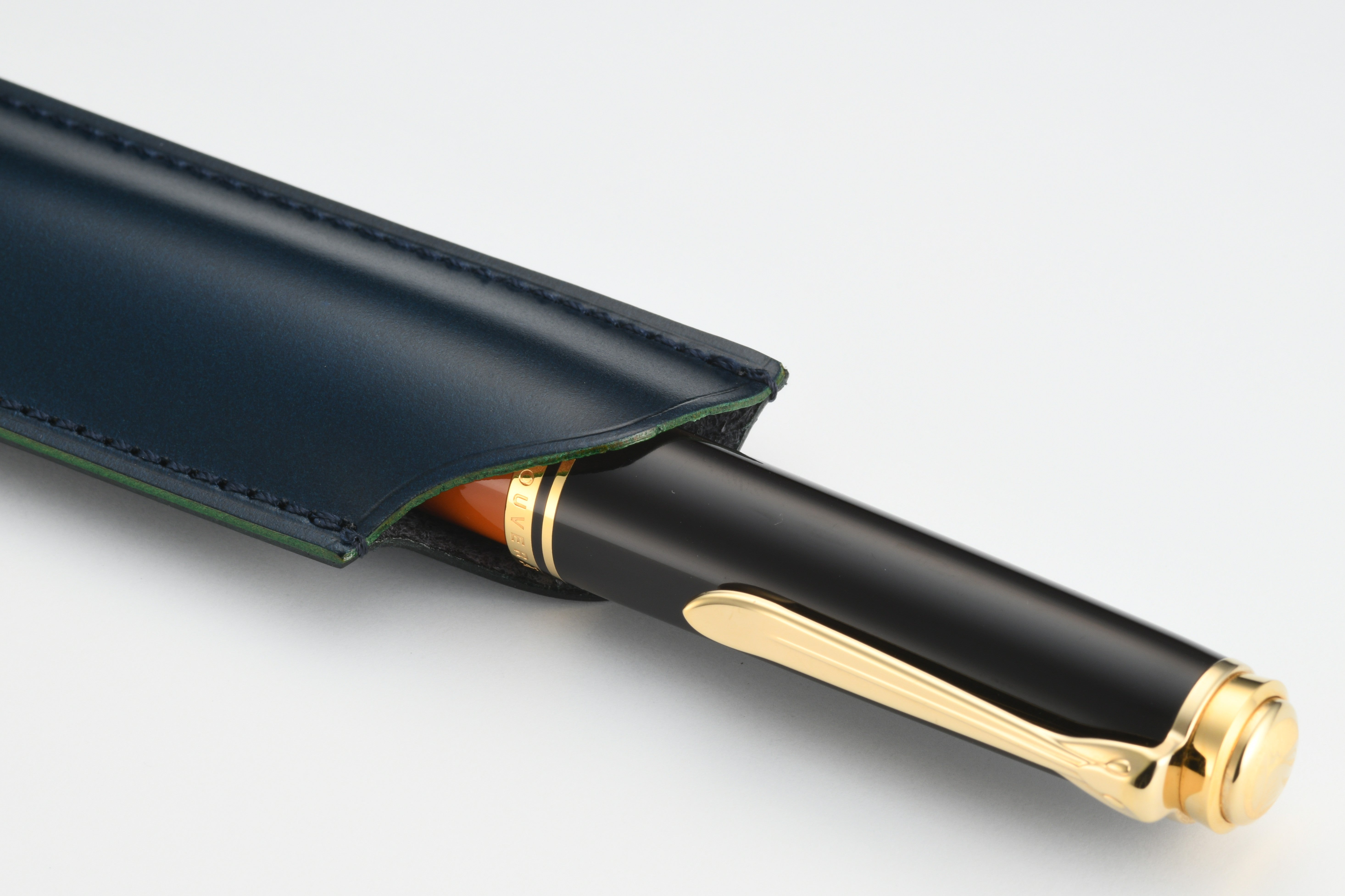 「LOAPAD コードバン ペンシース」は、国内唯一のコードバン専門フィニッシャー、レーデルオガワが手がけるLOAPAD コードバンを表革に使用したペンシースです。趣味文コラボモデルでは、上質な雰囲気を纏う「ネイビー」を採用しました。裏革はイタリア、ヴィルジリオ社製のマルゴーで、表裏ともに経年変化を楽しめるレザーとなっています。