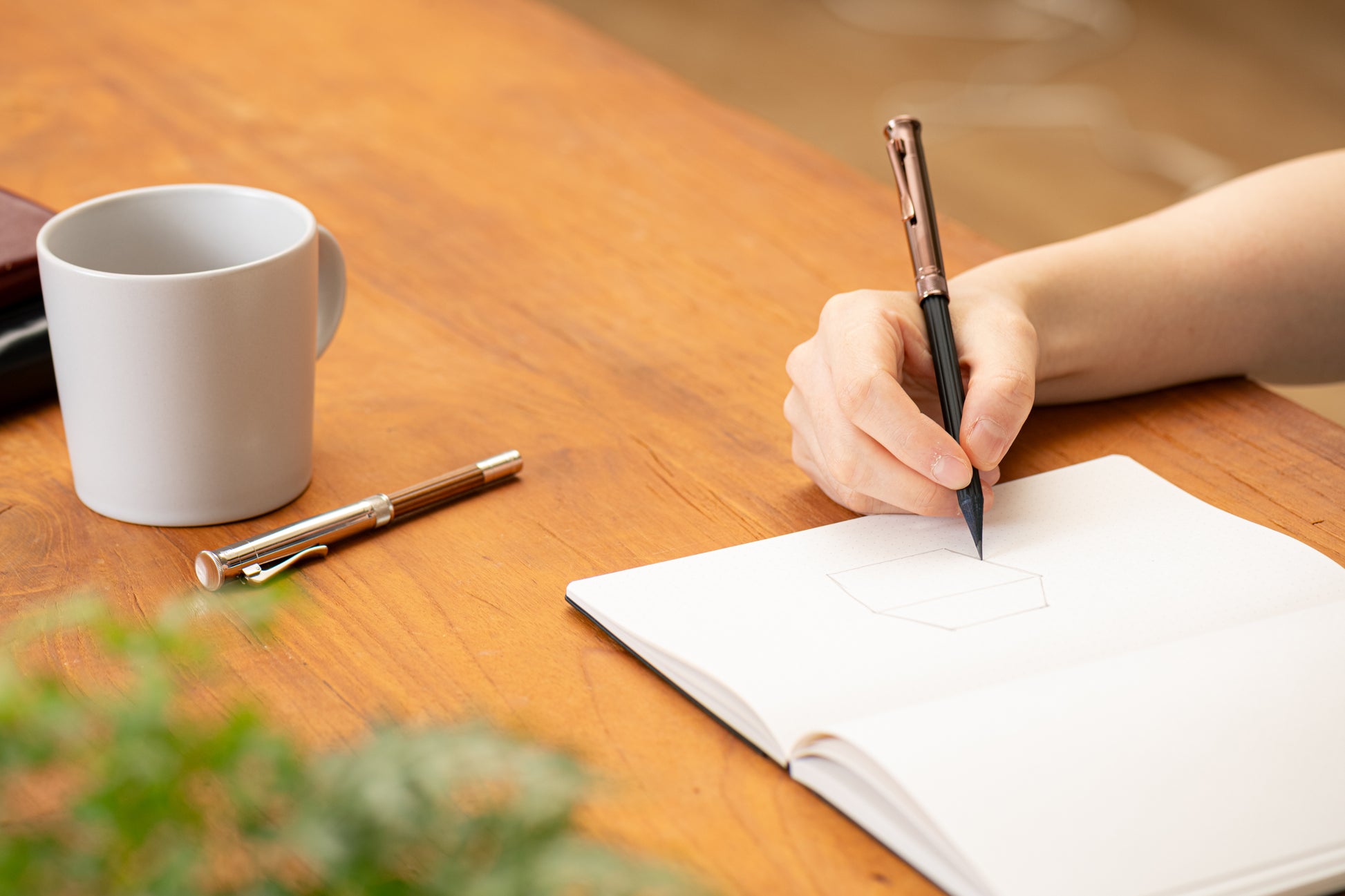 斬新なブラウンの光沢と、ポケットペンシルの黒軸のコントラストが美しい。
